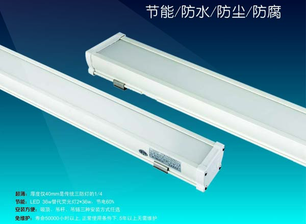 高亮度:普瑞斯LED三防燈燈采用高效LED芯片以及高導熱材料板制造而成,1米中心照度比傳統三防燈(2×36W)高15%。